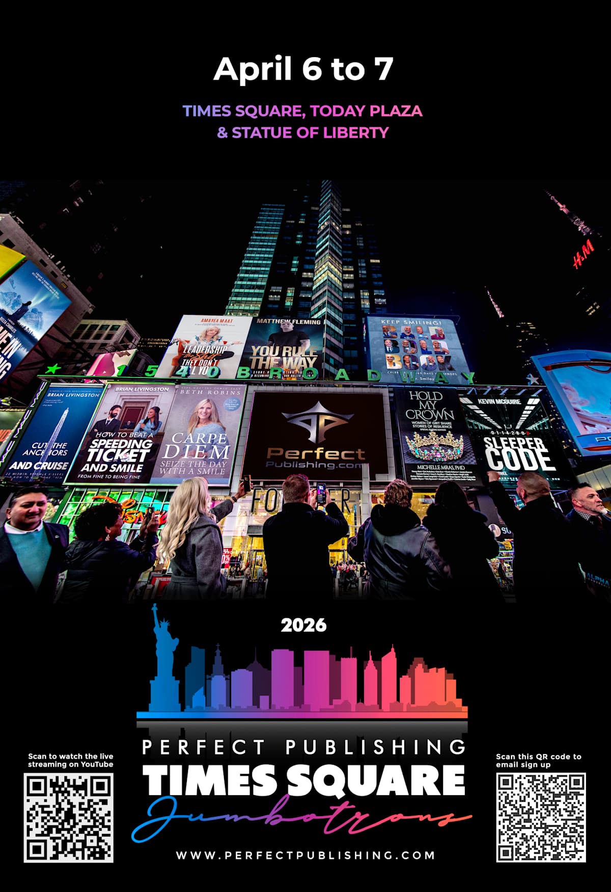 Authors who wish to join the Perfect Publishing team in person to see their book live on the Times Square billboard are welcome to attend. Please note that travel and hotel accommodations will be your responsibility.Β